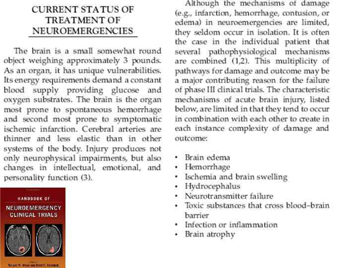 КОНЦЕПЦИЯ ЛУНДА • Эта концепция применима для больных с крайне тяжелыми церебральными повреждениями. которые протекают с утратой механизмов ауторегуляции МК и/или реактивности на 002. При этом также допускается прорыв ГЭВ с проницаемостью его для электролитов [2: 3]. В этой ситуации перемещение жидкости через мембраны зависит от градиента гидростатических давлений между церебральными капиллярами и интерстицием. У этих больных, когда механизмы ауторегуляции не работают, среднее АД передается непосредственно на мозговые капилляры и образование отека является пропорциональным градиенту давлений артерии/ интерстиций. Период управляемой артериальной гипотензии в этой ситуации должен поддерживаться до восстановления функции ГЭБ. Более того, для уменьшения внутричерепного объема мозга применяются селективные венозные вазоконстрикторы такие, как дигидроэрготамин. В кратком изложении концепция Лунда включает в себя гиповолемню и гипотензию в сочетании с поддержанием адекватного коллоидного давления и применением дигидроэрготамина [2; 3].
