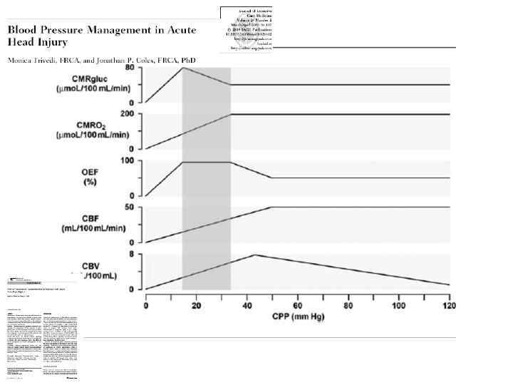 Содержимое полости черепа является суммой мозговой паренхимы, объема цереброспинальной жидкости и крови, находящейся в сосудах мозга. Этот объем заключен в замкнутом пространстве полости черепа, в котором даже небольшое увеличение одного из компонентов способно вызвать выраженное повышение внутричерепного давления (ВЧД). Церебральный интерстициальный отдел контролируется астроцитами и их плотный контакт вокруг сосудов мозга, как признается в настоящее время, является главной структурой гематоэнцефалического барьера (ГЭБ). ГЭБ в норме непроницаем для электролитов, и благодаря осмотическим силам происходит уравновешивание между кровью и мозгом. Следовательно, нормальный объем мозгового вещества в физиологических условиях контролируется величиной осмотического давления плазмы крови. Клетки мозга являются резистентными к сдвигам осмотического давления благодаря эффективным адаптационным механизмам, которые обеспечивают коррекцию объема нейронов в течение нескольких минут. При повреждении мозга повреждается и ГЭБ и вода проникает через него по простому градиенту гидростатических давлений. Объем цереброспинальной жидкости (ЦСЖ) пассивно контролируется скоростями продукции и резорбции, равными 0, 35 мл/мин. Скорость продукции является пропорциональной градиенту давлений между артериями и ЦСЖ. но зависит также от сопротивления фильтрации. ЦСЖ пассивно реабсорбируется в венозном отделе сосудистой системы мозга. Скорость резорбции зависит от градиента давлений ЦСЖ/вена и сопротивления резорбции. Градиент давления между ЦСЖ и венозным отделом сосудистой системы получил название “эффективного давления ЦСЖ”. Увеличение объема ЦСЖ может быть результатом увеличения скорости продукции или снижения скорости резорбции. Венозная гипертензия и увеличение сопротивления резорбции (вызванное наличием крови как при субарахноидальном кровоизлиянии или белков воспаления как при инфекционных процессах) являются наиболее частыми причинами как острого так и хронического увеличения объема ЦСЖ. Внутричерепной объем крови подразделяется на венозный отдел — составляет около 75% всего объема крови, 5% объема приходится на долю капилляров и 20% — на долю артерий. Величина внутричерепного объема крови контролируется главным образом сосудистым тонусом: вазоконстрикция как при гипокапнии или контролируемой гипертензии. ведет к снижению внутричерепного объема крови. Когда имеет место увеличение объема ткани мозга, все другие компоненты интракраниальной системы имеют тенденцию к уменьшению для компенсации этого увеличения [9]: например. увеличение объема мозгового вещества компенсируется уменьшением объема ЦСЖ посредством ее перемещения в спинальный отдел. Церебральное венозное давление неодинаково во всех отделах венозной системы: венозные синусы мозга имеют толстые фиброзные стенки и таким образом они защищены от сдвигов ВЧД. Давление в синусах мозга таким образом зависит в основном от экстрацеребрального венозного давления. Паренхимальные мозговые вены более чувствительны к внешней компрессии окружающей мозговой тканью при повышении ВЧД. ЦПД является градиентом между средним АД и ВЧД или венозным давлением (последние два показателя близки по величине и могут использоваться в равной степени).