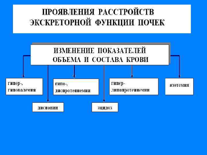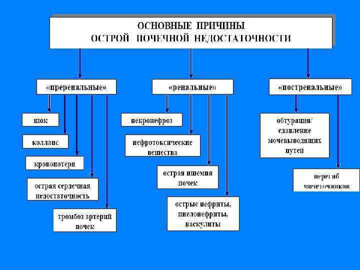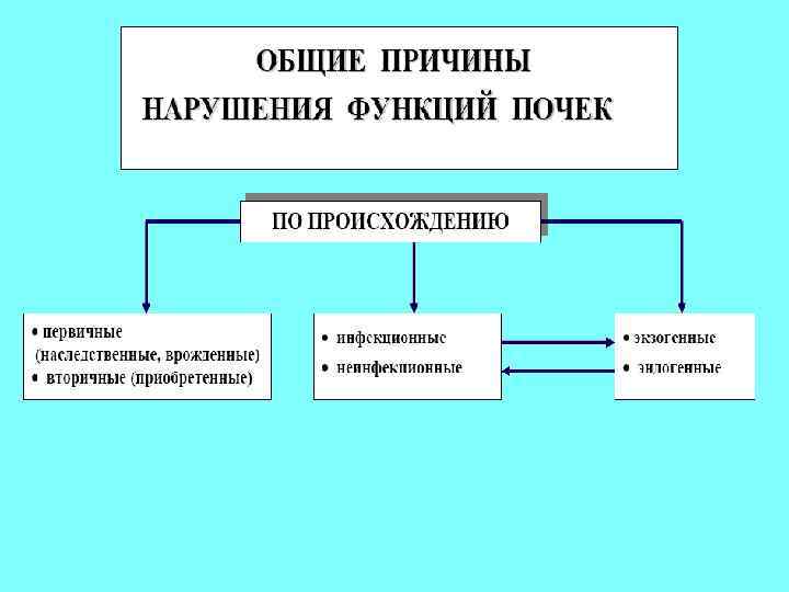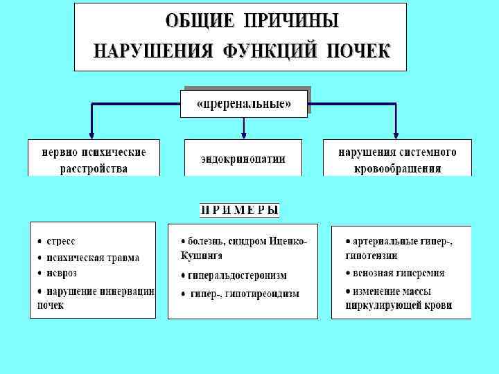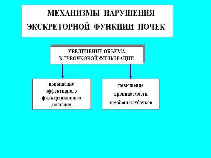Внепочечные причины n n n Снижение кровяного системного давления в связи с сердечной или сосудистой недостаточностью, кровопотерей, обезвоживанием; при падении систолического артериального давления ниже 50 мм рт. ст. фильтрация прекращается полностью Повышение онкотического давления плазмы крови Рефлекторный спазм приносящих артериол почечных клубочков