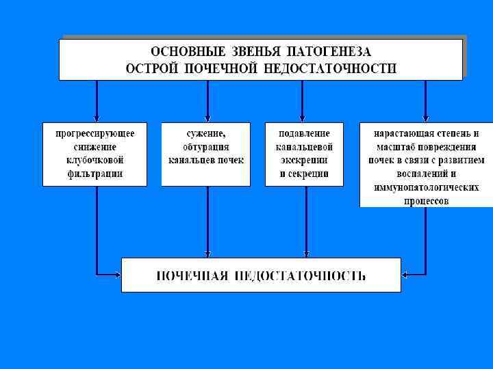 Патогенез ОПН резкое снижение клубочковой фильтрации и повреждения канальцевого эпителия в связи с ишемией или действием нефротоксинов , что сопровождается нарушением процессов реабсорбции, секреции и экскреции.