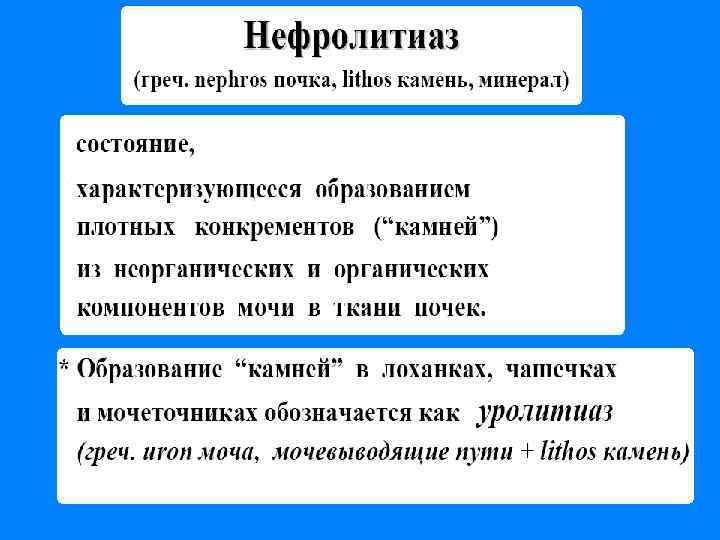 Причины нефро-и уролитиаза экзогенные эндогенные избыточное потребление инфекционные неинфекционные солей (особенно кальциевых) и гиповитаминозы (особенно А) (нарушение функции щитовидной и паращитовидной железы, подагра, миеломная болезнь).