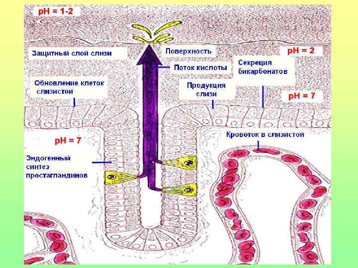 Агрессивные и протективные факторы желудочного сока Протективные Агрессивные Слизь HCl Амилин, ГИП и др. пептиды Пепсин Бикарбонаты Простагландин Е 2 Адекватное кровоснабжение Желчные кислоты, лизолецитин Helicobacter рylori