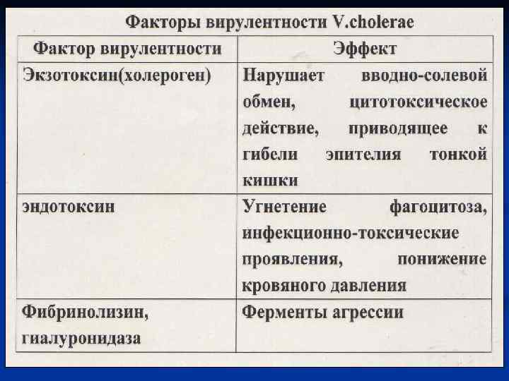 Вирулентность адгезины, обуславливающие их выраженные адгезивные свойства, n фермент лецитиназа, n основной фактор патогенности термостабильный гемотоксин, определяет прямой гемолиз и термолабильный гемолизин n энтеротоксины и цитолизины n