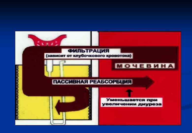 Концентрационная функция n n Зависит от взаимодействия альдостерона и АДГ в регуляции реабсорбции натрия и воды Циркадность зависит от АДГ мало - реабсорбция снижается – много разбавленной мочи АДГ много - реабсорбция увеличивается – мало концентрированной мочи n Проверяется пробой Зимницкого (24 часовой тест) Никтурия Изостенурия Гипостенурия