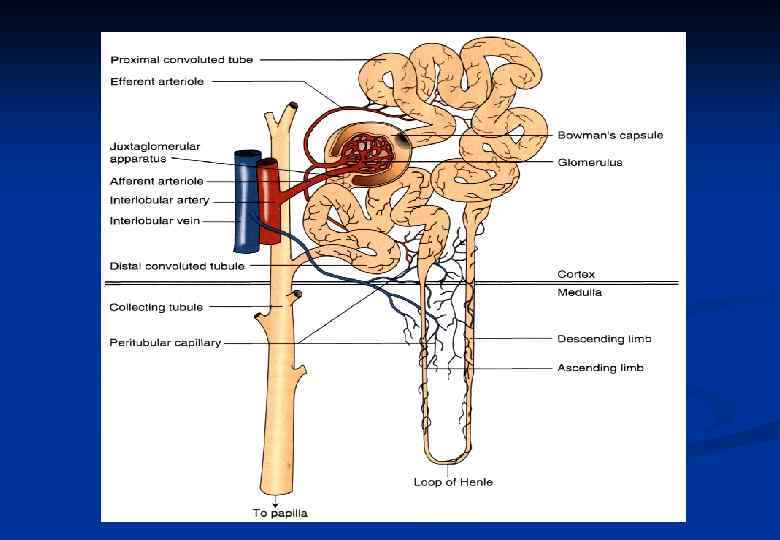 Особенности строения и функции Функциональной единицей почек является нефрон n В почках функционирует около 1, 2 млн. нефронов n Основные структурные элементы нефрона: n - клубочек - проксимальные канальцы -петля Генле - дистальные канальцы