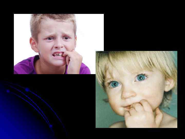 Обкусывание ногтей одинаково часто встречается у представителей различных полов с небольшим преобладанием у мальчиков. l На первом этапе обкусывание ногтей можно достаточно легко устранить, заинтересовав ребенка чем-либо другим (соской, леденцами, сухариком и др. ). Если этого не происходит, то обкусывание ногтей возникает во все более различных ситуациях, приобретая характер устойчивого поведенческого автоматизма. В отличие от яктации и сосания пальцев, обкусывание ногтей чаще связано не со сном, а с поведением в период бодрствования. Ребенок может обкусывать ногти в момент нетерпеливого ожидания какого-либо события, когда ему временно запрещают игру или другие действия.