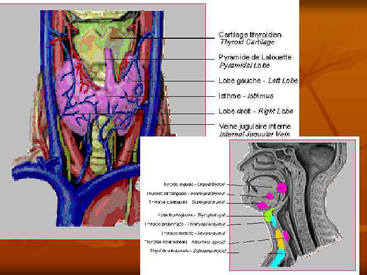 АНАТОМИЯ n n n Щитовидная железа является самой крупной эндокринной железой. Вес ее у взрослого человека колеблется от 15 до 50 г и в среднем равен 25 г. Перешеек железы в виде тонкого тяжа обычно прикрывает ІІ –ІІІ хрящевые кольца трахеи. Боковые доли железы лежат по обеим сторонам трахеи и гортани, поднимаясь до середины высоты последней, имеют овально-уплощенную форму и размеры 3 -5 см в высоту, 2 -3 см в ширину и 1 -2 см в толщину.
