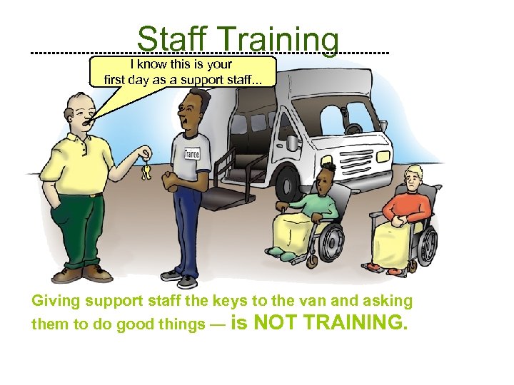 Staff Training I know this is your first day as a support staff. . . Giving support staff the keys to the van and asking them to do good things — is NOT TRAINING.