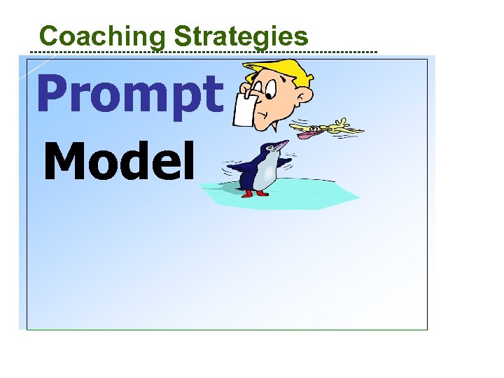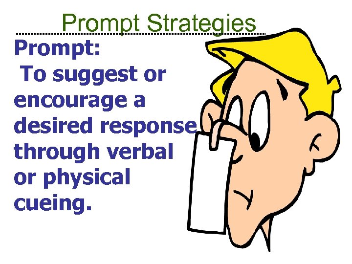Prompt Strategies Prompt: To suggest or encourage a desired response through verbal or physical cueing.