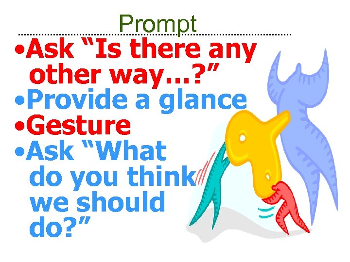 Prompt • Ask “Is there any other way…? ” • Provide a glance • Gesture • Ask “What do you think we should do? ”