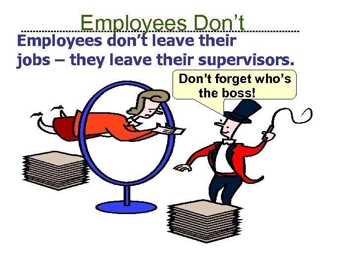 Employees Don’t Employees don’t leave their jobs – they leave their supervisors. Don’t forget who’s the boss!