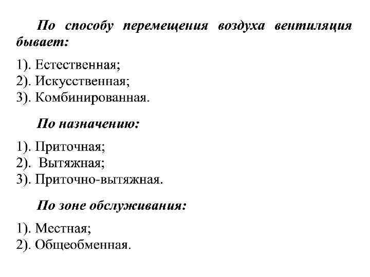 Приточная система вентиляции. • общеобменная • местная Применяется в производствах со значительными тепловыделениями и малой интенсивностью выделения вредных веществ при условии, что поступающий воздух снизит их концентрацию до допустимой. Местная приточная вентиляция может быть представлена в виде воздушного душирования, воздушных завес.