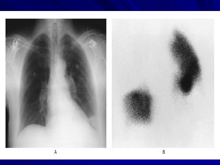 V/Q scanning Look for evidence of ventilation perfusion mismatch Can only really be done if pt has normal CXR Normal scan virtually excludes PE even if pretest clinical probability was felt to be high. If a patient with intermediate clinical probability of PE has an intermediate scan then need further testing