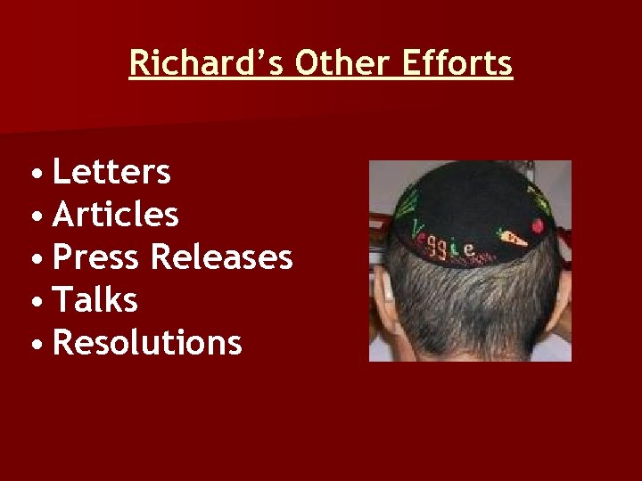 Richard’s Other Efforts • Letters • Articles • Press Releases • Talks • Resolutions
