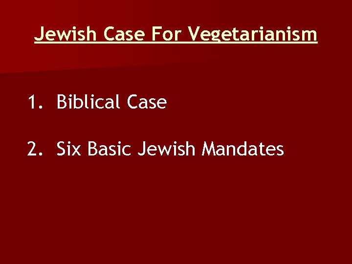 Jewish Case For Vegetarianism 1. Biblical Case 2. Six Basic Jewish Mandates