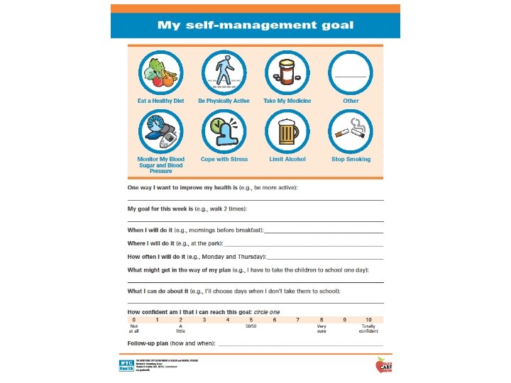 Assessing for Acceptance of Medical Management 1. Ask the patient – “Do you feel that you can check your blood sugar every day? ” 2. Assess for barriers to acceptance – Recent diagnosis – Denial of diagnosis – Lack of knowledge – Lack of trust in provider – Lack of trust in medications – Beliefs