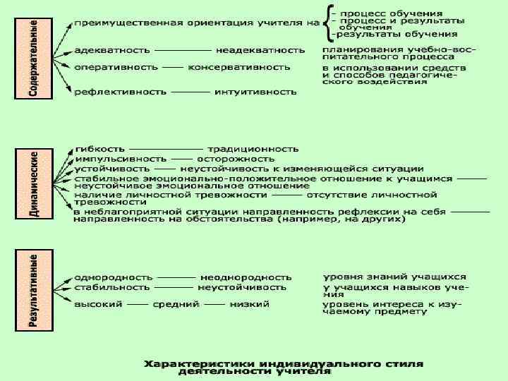 Рассуждающе-методический Ориентируясь преимущественно на результаты обучения и адекватно планируя учебно-воспитательный процесс, учитель проявляет консервативность в использовании средств и способов педагогической деятельности. Высокая методичность сочетается с малым, стандартным набором методов обучения, предпочтением репродуктивной деятельности учащихся, редкими коллективными обсуждениями. Учитель этого стиля отличается рефлексивностью, малой чувствительностью к изменениям ситуаций на уроке, осторожностью в своих действиях.