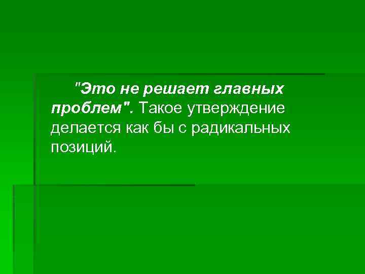 "Это не решает главных проблем". Такое утверждение делается как бы с радикальных позиций.