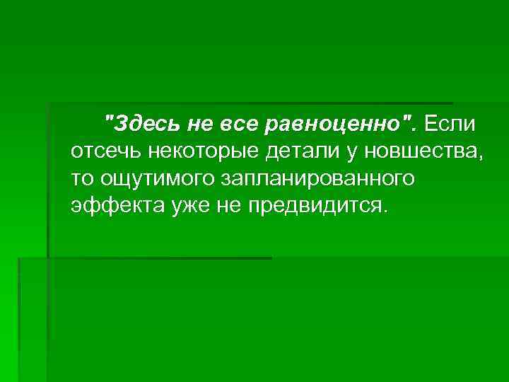 "Здесь не все равноценно". Если отсечь некоторые детали у новшества, то ощутимого запланированного эффекта уже не предвидится.