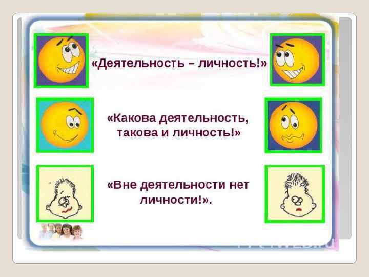 ХАРАКТЕРИСТИКА ДЕЯТЕЛЬНОСТИ ЕДИНСТВО ПРЕДМЕТНОГО И ЧУВСТВЕННОГО В Д. , Т. Е. ДЕЯТЕЛЬНОСТЬ ОСУЩЕСТВЛЯЕТСЯ СУБЪЕКТОМ – «ДЕЯТЕЛЕМ» ПРИНЦИП ЕДИНСТВА СОЗНАНИЯ И ДЕЯТЕЛЬНОСТИ: «Деятельность представляет собой динамическую саморазвёртывающуюся иерархическую систему взаимодействий субъекта с миром, в процессе которых происходит порождение психического образа, воплощение его в объекте, осуществление и преобразование опосредованных психическим образом отношений субъекта в предметной действительности» (А. Г. Асмолов) ОПРЕДМЕЧИВАНИЕ И РАСПРЕДМЕЧИВАНИЕ