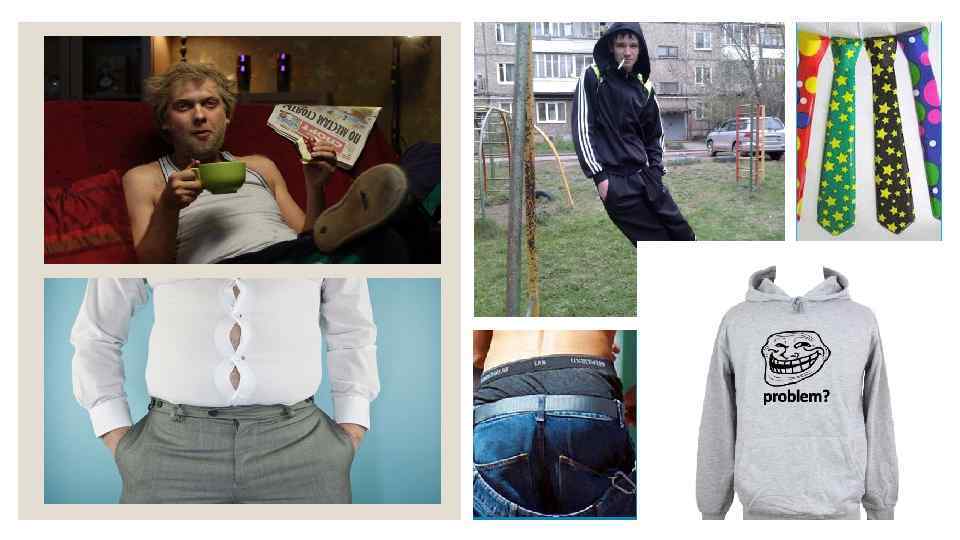 Мужской стиль Желательные элементы гардероба Нерекомендуемые элементы гардероба Формальный костюм футболки; «майки-алкоголички» ; футболки с Пиджак из фактурной ткани (шерсть, вельвет) надписями; рубашки и футболки без рукавов; Сорочки светлых оттенков 2 -3 шт. яркая одежда; джинсы; спортивная одежда Рубашки 2 -3 шт. (если только спорт – не ваша профессия); Классические джинсы кожаная верхняя одежда (плащи, пальто); Трикотаж: свитер классический, кардиган шорты. Нежелательная обувь: шлёпки, Брюки (цветные, вельветовые, хлопковые) вьетнамки, кеды, кроссовки, сапоги. Обувь: удобные туфли, удобные полуспортивные туфли. Аксессуары: 1 -2 формальных галстука, 1 -2 галстука в неформальных цветах, но без яркого узора, запонки, сумка, шарф.