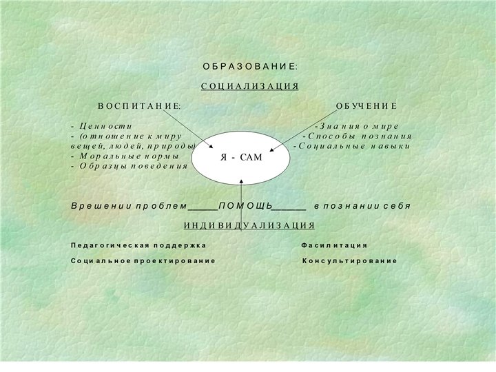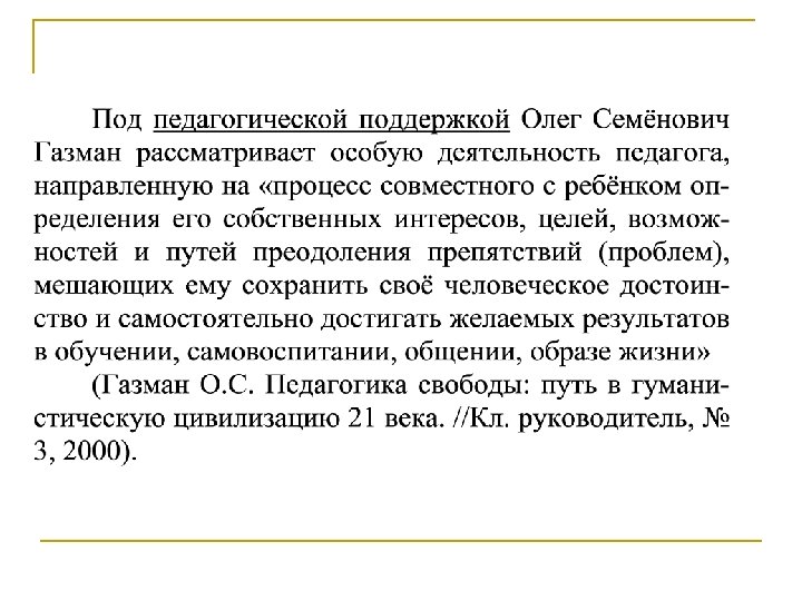 Педагогическая поддержка подросткам предполагает помощь в решение жизненно важных задач, а именно: n n n n Самоопределение в сферах человеческих смыслов, идеалов, ценностей определение жизненного и профессионального пути постановке задач будущего (образование, карьера, семья) освоение новых поло-ролевых отношений приобретения навыков межличностного общения со сверстниками своего и противоположного пола становление новых, более независимых отношений в семье (группе): уменьшения эмоциональной зависимости при сохранении потребности в психологической и материальной поддержки развитие абстрактного и творческого мышления