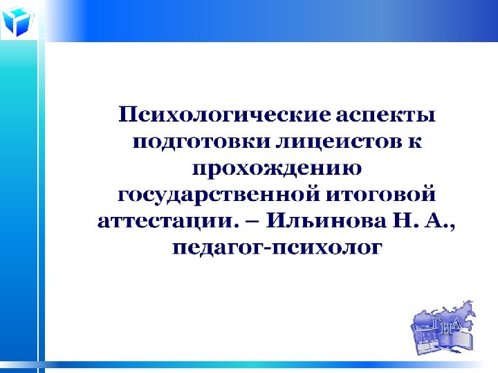 Ход педагогического совета: 1. Подготовка к государственной итоговой аттестации в 2015 году: управленческий аспект. – Миткевич Е. Ю. , директор лицея. 2. Психологические аспекты подготовки лицеистов к прохождению государственной итоговой аттестации. – Ильинова Н. А. , педагогпсихолог. 3. Мониторинг как системная диагностика качества подготовки к государственной итоговой аттестации по русскому языку. – Перова Н. В. , заместитель директора по УР. 4. Профильное обучение как ресурс индивидуализации обучения и подготовки к ГИА. – Ананьева Ж. А. , учитель истории и обществознания. 5. Педагогические находки при подготовке к государственной итоговой аттестации. – Емельянова Н. В. , учитель математики. 6. Новые технологии при подготовке обучающихся к сдаче ГИА: компьютерный контроль и дистанционные образовательные технологии. – Юрлова Е. Г. , заместитель директора по ИКТ, Смирнова Г. М. , учитель физики. 7. Роль родителей и их практическая помощь при подготовке к государственной итоговой аттестации. – Резяпова Е. В. , классный руководитель 9 Б класса, Зверева О. С. , родительница 11 класса.