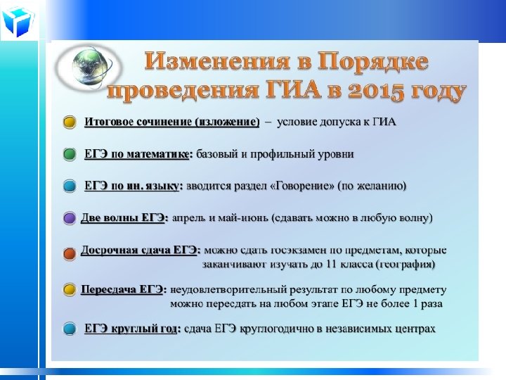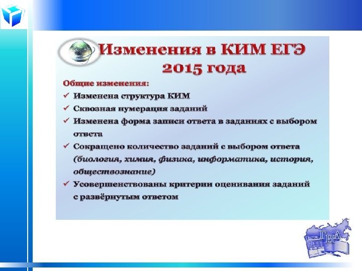 Проект решения педагогического совета 4. 4. отработать с обучающимися навыки заполнения бланков, в том числе регистрационных; 4. 5. активно использовать сервисы Интернет, возможности электронной системы «Дневник. ру» для распространения тестовых заданий, опорных конспектов, рабочих схем, помогающих обучающимся отработать новую тему; 4. 6. усилить образовательный контроль за подготовкой к ГИА обучающихся, выбравших для прохождения аттестации непрофильный предмет; 4. 7. создавать условия и контролировать самостоятельность и активность обучающихся на теоретическом и практическом уровнях изучения предмета; 4. 8. совершенствовать качество профильного обучения, используя методические находки, современные технологии и методики преподавания. 5. Классным руководителям: 5. 1. совместно с психологом подготовить Памятку для родителей, в которой отразить необходимость психологической поддержки обучающихся при подготовке к ГИА и во время ее прохождения, соблюдения режима дня и правильного питания; 5. 2. совместно с родителями оказывать помощь обучающимся в организации деятельности по подготовке к экзаменам, правильном распределении времени, разработке плана подготовки, ежедневной нагрузки. 6. Провести в 4 четверти репетиционные экзамены по обязательным предметам, а также по предметам, не включенным в список обязательных. 7. Педагогу-психологу осуществлять индивидуальную помощь обучающимся в преодоление психологических барьеров и личностных трудностей, препятствующих успешной сдаче ГИА.