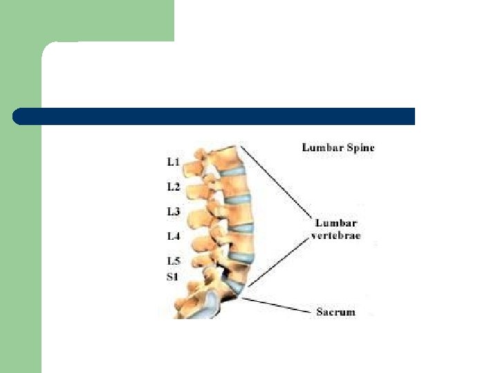 Contributions to Lumbar Somatic Dysfunction l l l Sacral base unleveling Psoas spasm Short leg Scoliosis Spondylolisthesis Spondylolysis