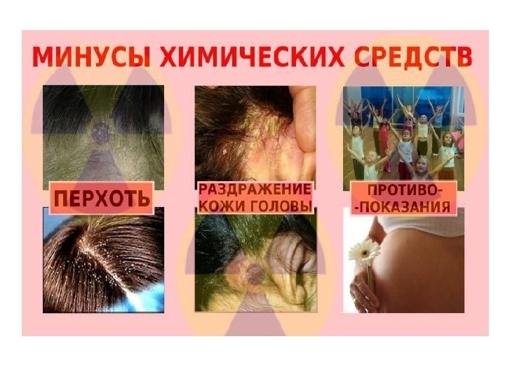 Лечение педикулёза Второй вариант • • Проводится в случаях наличия у Вашего ребёнка кожных, аллергических заболеваний и если возраст ребёнка до 5 лет. Вычешите живых насекомых частым гребешком желательно в ванную и смойте горячей водой. Обрабатывайте пряди волос аккуратно, не касаясь кожи головы ребёнка, разведённым пополам с водой 9% столовым уксусом и снимайте гниды с волос руками или гребешком. На гребешок можно насадить вату, смоченную тем же раствором для улучшения отклеивания гнид. Помойте голову и тело ребёнка детским мылом или шампунем. Постирайте нательное и постельное бельё и вещи ребёнка отдельно от других вещей, прогладьте утюгом с отпариванием. Осмотрите и при выявлении насекомых, обработайте всех членов семьи. Для обработки взрослых членов семьи используйте противопедикулёзные средства, которые можно приобрести в аптечной сети. Повторите осмотры ребенка и всех членов семьи через 7, 14, 21 день и проведите при необходимости повторные обработки. В случае выявления насекомых и гнид проведите повторные обработки до их полного истребления.