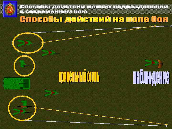 При непосредственном соприкосновении с противником личный состав отделения ведет усиленное наблюдение, изучает местность и занимает огневые позиции
