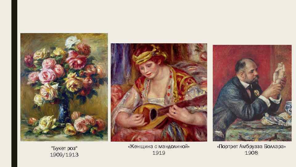 "Букет роз" 1909/1913 «Женщина с мандолиной» 1919 «Портрет Амбруаза Воллара» 1908