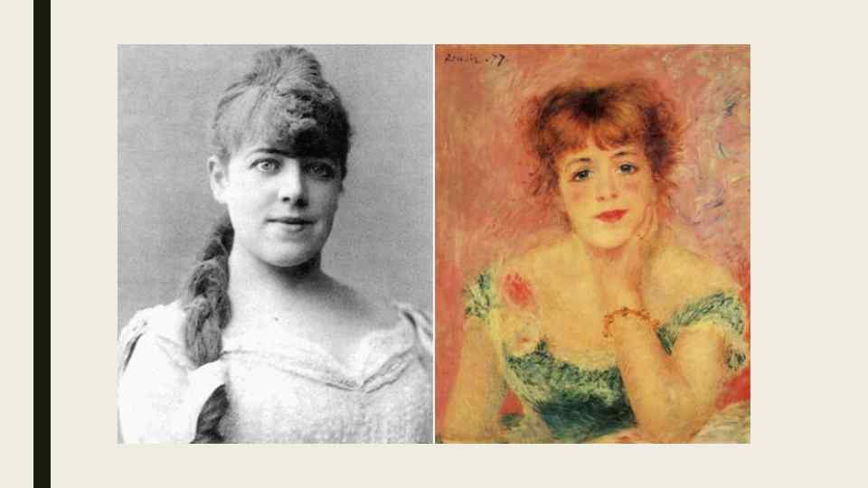 Жанна Самари в картинах Ренуара Ренуар написал три портрета Жанны Самари, в период с 1877 по 1880 гг. Они познакомились в салоне мадам Шарпантье, после чего родители Жанны заказали ее портрет. Через месяц художник приступил к работе над следующим, который вызвал противоречивую реакцию. Эмиль Золя писал: «Несомненный успех выставки – белокурая веселая головка мадемуазель Самари» . Некоторые критики были возмущены: «Какой странный портрет! Невозможно представить себе что-либо более далекое от оригинала» . В 1878 г. Ренуар создает еще один портрет, на котором актриса изображена в полный рост, в бальном платье. Наверное, нельзя сказать о портретах Жанны Самари лучше, чем Луи Леруа: «Приятная неопределенность в исполнении, неподдельная примитивность рисунка и небольшие зеленоватые оттенки на полной груди прекрасной дамы долго держали меня в плену! В блюдо из красок одновременно входит ваниль, красный крыжовник и фисташки. Этот портрет можно есть ложкой"