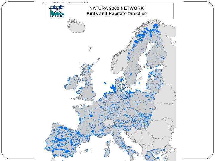 Европейский союз. VI Программа действий по окружающей среде на 2002 -2012 гг. Раздел Программы «Природа и биоразнообразие» . Цель – к 2010 г. добиться прекращения сокращения биоразнообразия Цели охраны природы должны достигаться с учетом экономических, социальных, культурных, региональных и рекреационных требований. Развитие сети Natura 2000 – всеевропейской системы охраняемых природных территорий для защиты наиболее ценных местообитаний и видов, находящихся под угрозой. Включает 26000 территорий Общая площадь 850 000 кв. км. Представляет более 20% территории Европы. Создавалась 25 лет