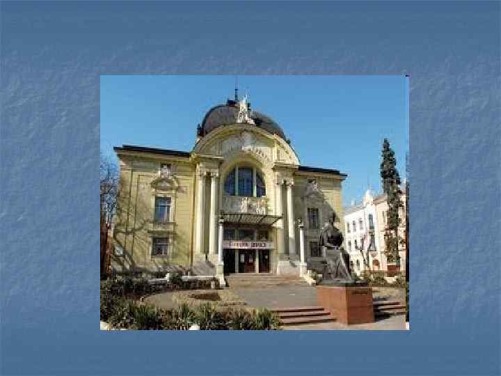 n n Чернівецький драматичний театор ім. О. Ю. Кобилянської. Поруч із театромпам’ятник Кобилянській та Алея Слави