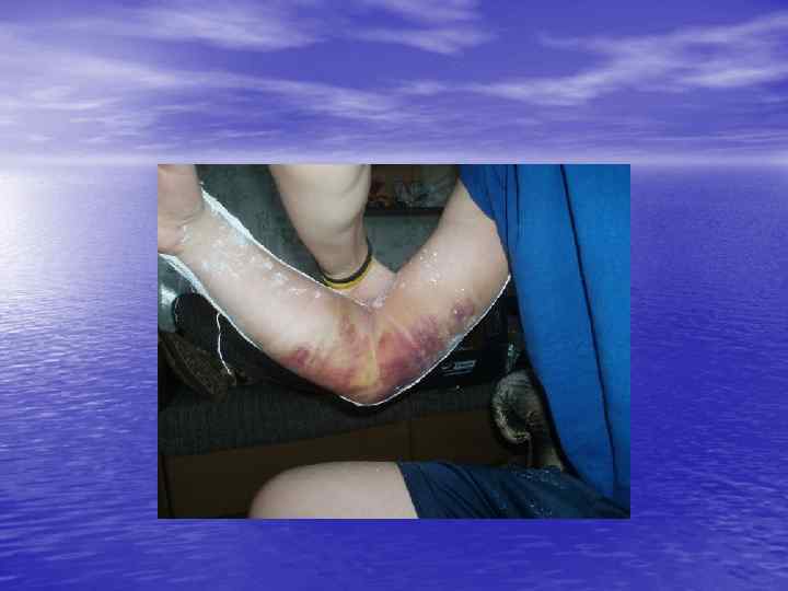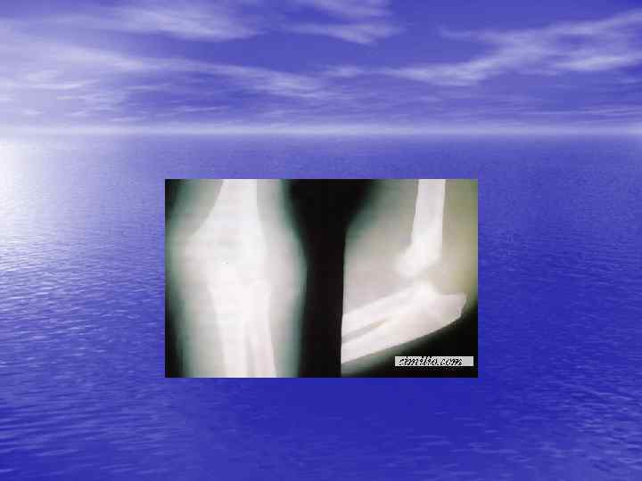 Клинические проявления • Абсолютные: • Крепитация – скрип • патологическая (не свойственная для данной • • • области у здорового человека) подвижность на протяжении кости укорочение сегмента конечности за счет смещения отломков по длине боль при нагрузке по оси кости и отломков деформация