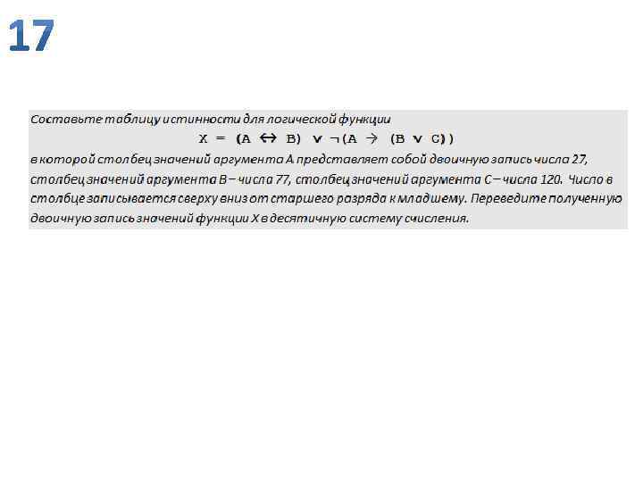 Ниже записана программа. Получив на вход число , эта программа печатает два числа, L и M. Укажите наибольшее из таких чисел , при вводе которых алгоритм печатает сначала 3, а потом 7. var x, L, M: integer; begin readln(x); L: =0; M: =0; while x > 0 do begin L: = L + 1; M: = M + x mod 10; x: = x div 10; end; writeln(L); write(M); end.