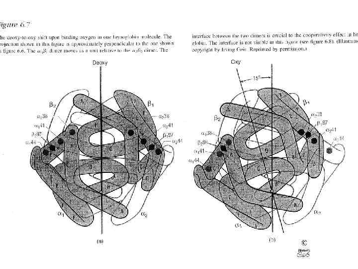 Взаимодействие субъединиц Дезокси Наложение двух конформаций Окси Поворот 15 о