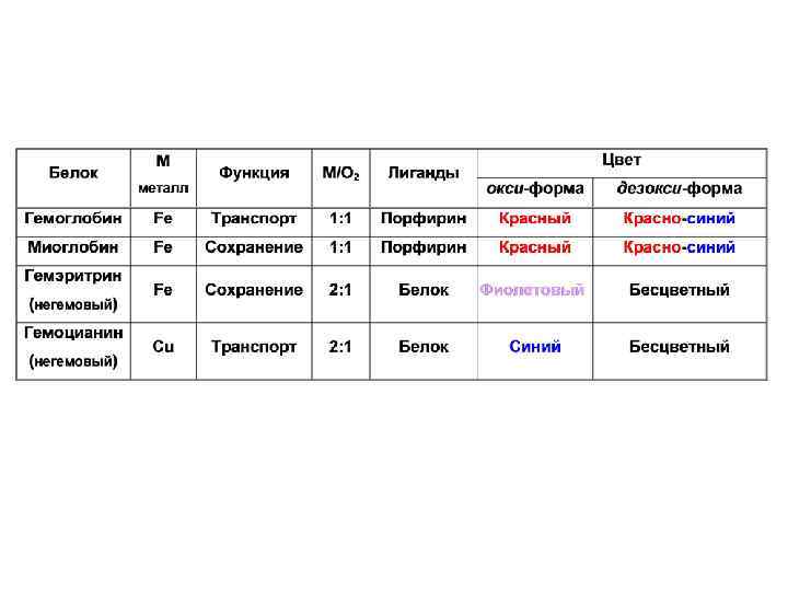 Гемэритрин негемовый железопротеин Дезокси-форма Окси-форма