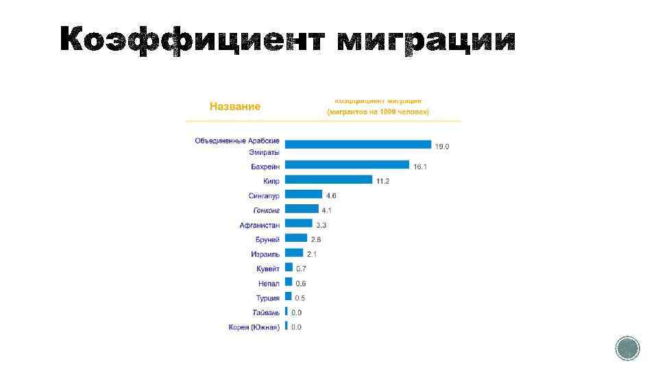 Сальдо миграции +25, 76 чел. на 1000 жителей. Коэффициент прибытия =6, 4 человек Коэффициент выбытия = 2, 1 человек Коэффициент механического прироста = 4, 3