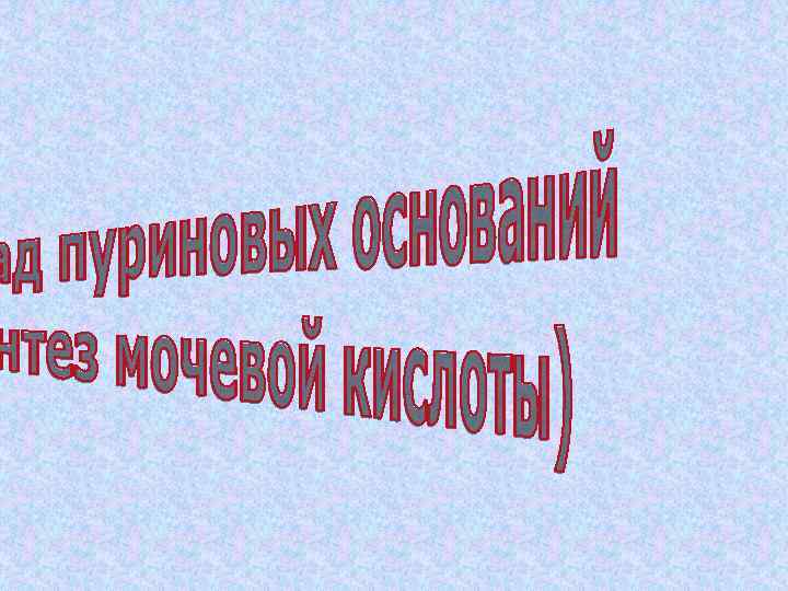 Нуклеозидфосфаты подвергаются гидролизу: 1. нуклеотид (нуклеозидфосфат) + Н 2 О → нуклеозид + Н 3 РО 4 фермент 5’(или 3’)-нуклеотидаза 2. перенос остатка рибозы от нуклеотида на Н 3 РО 4: нуклеозид + Н 3 РО 4 → Р-1 -Ф + АО фермент рибозилтрансфераза или гидролиз: нуклеозид + Н 2 О → АО + рибоза фермент нуклеозидаза