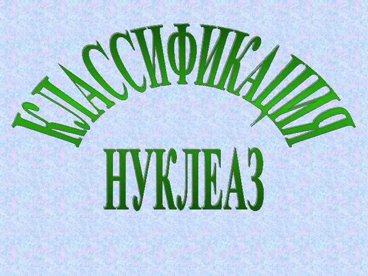 Дезоксирибонуклеазы I Ускоряют гидролиз фосфодиэфирных связей в одной гидролиз из цепей ДНК между остатком Н 3 РО 4 и 3’-атомом углерода остатка дезоксирибозы с образованием олигодезоксирибонуклеотидов Пример: панкреатическая ДНК-аза оптимум р. Н – 6, 8 -8, 0 активаторы – Mg 2+, Mn 2+ ингибиторы – олигонуклеотиды и анионы, связывающие Mg 2+ и Mn 2+