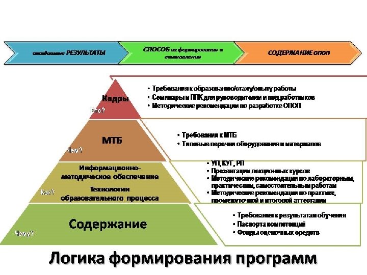 МЦК Минобрнауки России Региональные органы исполнительной власти Межрегиональный центр компетенций Наблюдательный совет Союз WSR Структурные подразделения колледжа Трансляция Структурное подразделение: Тренировочный полигон компании -партнеры Практики подготовки по ТОП-50 F: Массовая подготовка СЦК F: Подготовка сборной WS Поставщики оборудования Практики подготовки WS Структурное подразделение: Учебный центр F: 1) Анализ и трансляция новых Эксперты WS Трансляция Трансфер программ и технологий подготовки кадров; 2) Отработка подготовки кадров по ТОП -50 Вузы - партнеры эксперты Образовательные организации региона Образовательные организации других регионов
