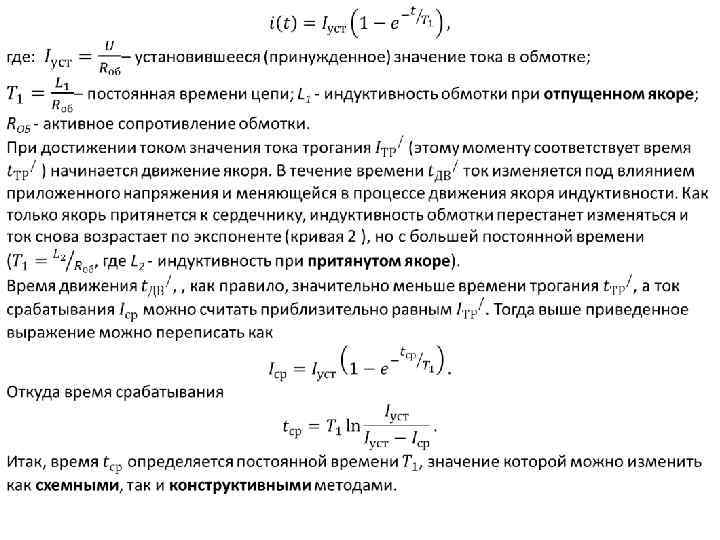 ПЕРЕХОДНЫЕ ПРОЦЕССЫ В ЭЛЕКТРОМАГНИТНЫХ РЕЛЕ. МЕТОДЫ УСКОРЕНИЯ СРАБАТЫВАНИЯ РЕЛЕ Реле представляет собой активно-индуктивную нагрузку, LОБ и RОБ – соответственно индуктивность и активное сопротивление обмотки реле. схема замещения реле переходные характеристики
