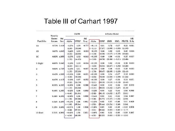 Table III of Carhart 1997