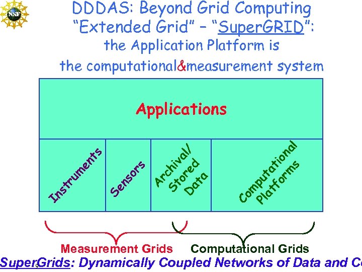 DDDAS: Beyond Grid Computing “Extended Grid” – “Super. GRID”: the Application Platform is the computational&measurement system Measurement Grids m Pl put at a fo tio rm na s l Co Ar St chi or val Da ed / ta s or Se ns In st ru m en t s Applications Computational Grids Super. Grids: Dynamically Coupled Networks of Data and Co 9