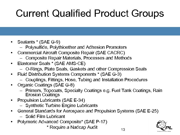Role of Qualified Product Group • Meet and review data in a timely manner as required by procedure • Establish procedures for the review • Review data for conformance to requirements • Define and approve data sources • Disposition each qualification submittal • Forward evaluation reports to PRI 12