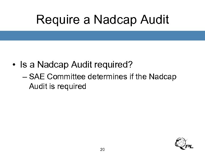 Require a Nadcap Audit • Is a Nadcap Audit required? – SAE Committee determines if the Nadcap Audit is required 20
