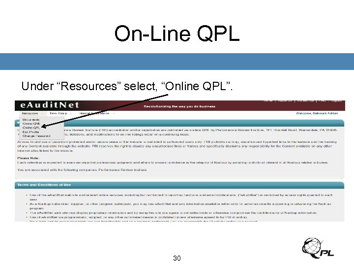 On-Line QPL Under “Resources” select, “Online QPL”. 30
