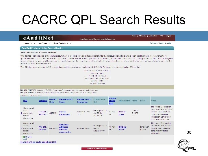 SAE Website Link • Link SAE Standards website to PRI QPL – Button would indicate “PRI-QPL” Link to e. Audit. Net 35